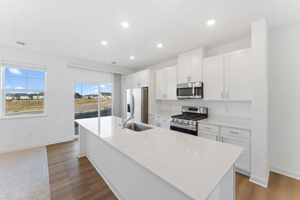 Welcome to the peaceful and private Rush Hollow community, ideally tucked away from the hustle of County Road 81. The beautiful Liberty Collection is now available in Maple Grove, featuring the highly desirable St. Clair floor plan. This thoughtfully designed end-unit townhome offers a formal dining room, a cozy electric fireplace, and three spacious bedrooms on the upper level. The primary suite includes a generous walk-in closet, and the home comes fully equipped with a washer, dryer, and water softener—providing true move-in convenience. This home is complete and move-in ready. Residents enjoy access to top-rated schools, nearby green spaces, a private tot lot, and convenient proximity to shopping, dining, and entertainment. Ask about how to qualify for a 3.99% ARM + $5,000 in closing costs with the use of the Seller's Preferred Lender!