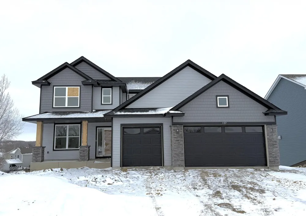 Home is under construction and will be completed in March. Set on a spacious walkout homesite, this contemporary two-story home offers a thoughtfully designed layout for modern living. The main level features a bright Great Room that flows seamlessly into a cozy nook and a stylish kitchen with stainless steel appliances, a corner pantry, and a large island—perfect for family gatherings and entertaining. A dedicated flex room provides versatile options, while a fireplace adds warmth and ambiance to the living area. Upstairs, the luxurious owner’s suite, three generously sized secondary bedrooms, and a convenient laundry room combine comfort and functionality. The expansive three-car garage offers ample space for vehicles and storage. Located approximately 30 minutes from the Twin Cities, Elko New Market provides a peaceful country setting with local parks, shops, and unique entertainment options, blending small-town charm with convenient metropolitan access.