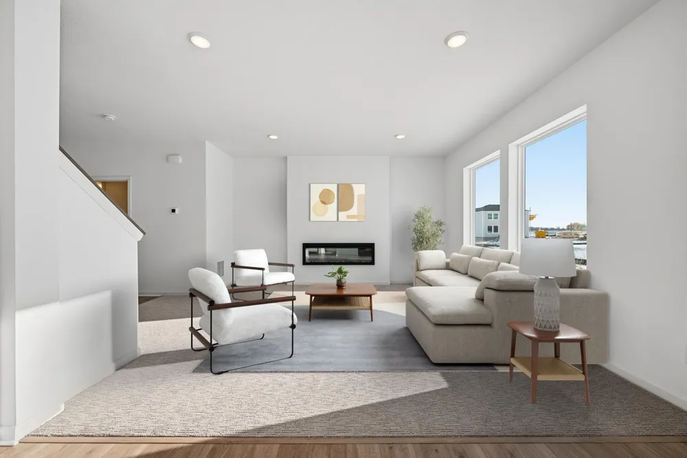 This Elias plan home is open and airy and the large windows invite plenty of sunlight. The open-concept combines functionality with modern elegance. Gather around the large kitchen island or the electric fireplace with friends and family. With four bedrooms plus laundry on the second level and a large 5th bedroom in the finished basement there is plenty of space for everyone. Meet your neighbors at the nearby city park with basketball, volleyball, soccer, pickleball/tennis, childrens play area, and a roundabout where food trucks will serve the community. Brayburn is a stunning community with trees, wetlands, ponds, miles of walking paths & a childrens park. Only a few miles from Maple Grove with all of its amenities and highways and yet Brayburn is quiet and serene with views of nature and land.
