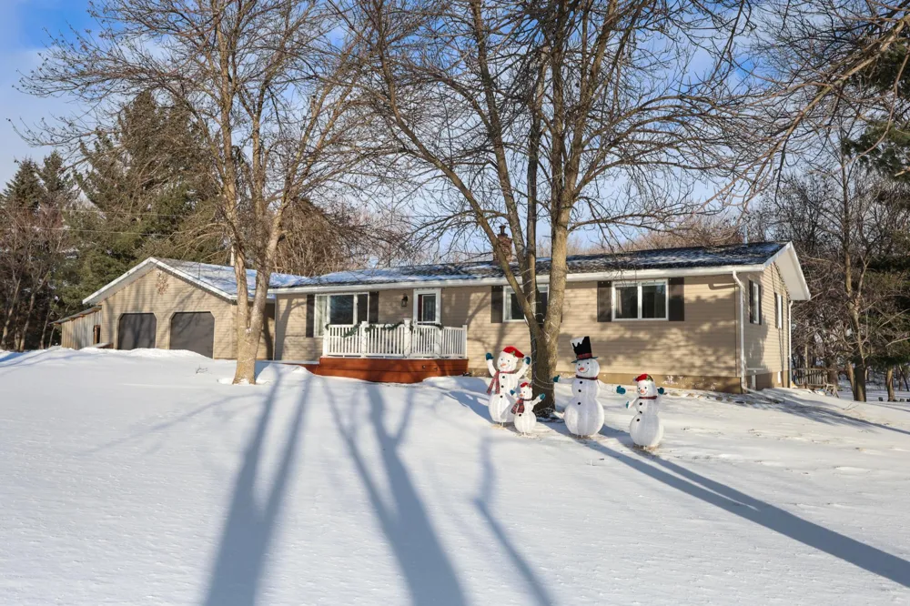 Hard to find walkout ranch style Home on over 3 acres that backs up to Johnsons Creek with mature trees creating a park like setting that’s a great spot to have a campfire and gather with friends and family. The main floor features three bedrooms, two bathrooms, and convenient main-floor laundry. The dining area walks out to a large deck overlooking the backyard. The lower level adds excellent living space with two additional bedrooms, office, family room, and a large mechanical/storage area. The lower-level bathroom includes a tile shower and double-bowl vanity. Walk directly out to the backyard from the lower level. A 28x32 garage provides plenty of room for vehicles, storage, and equipment. Located near the border of the St. Cloud and Kimball school districts.