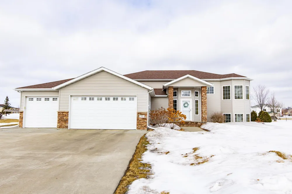 Rare opportunity to own a ½-acre property in West Fargo city limits, offering space, privacy, and a neighborhood setting that’s increasingly hard to find. This well-maintained home is conveniently located just off Sheyenne Street, providing easy access to shopping, dining, and schools. The upper level features a spacious living room, dining area, and large kitchen with island, abundant cabinetry, breakfast nook, and coffee bar. The primary suite with walk-in-closet and full bathroom, an additional bedroom (also with a walk-in closet), and additional bathroom complete the main level. Downstairs offers a huge family room highlighted by a stone-faced gas fireplace, wet bar, office nook, two additional bedrooms, and a versatile flex/bonus room. The utility and laundry area includes direct access to the heated and insulated three-stall garage with extensive shelving. Sliding doors off the dining area lead to a massive deck overlooking the expansive backyard, perfect for entertaining or enjoying the extra outdoor space. Meticulously maintained with recent updates including newer upstairs flooring, fresh paint throughout, and an updated water heater. Quality construction and pride of ownership shine throughout.