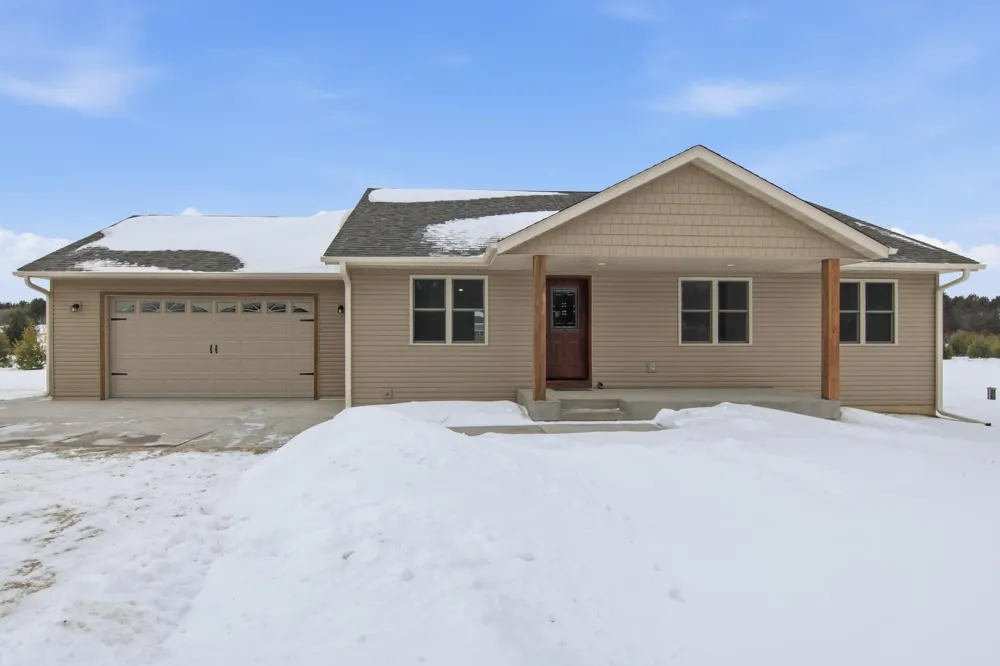 Excellent NEW CONSTRUCTION 3 BR / 2 full bath ranch home located North of Menomonie near to Tainter Lake! Features include a charming covered front porch, main floor laundry, oversized 24'x26' two-car garage, and a spacious 12'x12' rear deck perfect for grilling. Great primary suite with spacious walk in closet and nice full bath! The full unfinished basement is plumbed for a third bath and includes an egress window, making it easy to add a fourth bedroom (septic was built for a 4 BR capacity). Spray foam insulation adds extra efficiency. Great location near to bars and restaurants offering great food and live music and near to several boat landings to access Tainter Lake for boating and fishing fun. Fast closing possible. Must see!